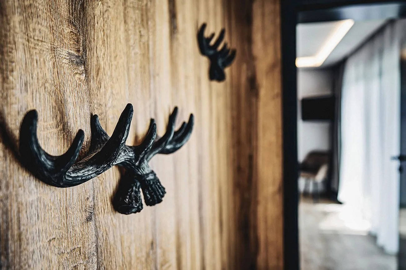 Chalet Amadeus offers generous space for up to 14 guests and features six stylishly furnished bedrooms and five modern bathrooms. On the ground floor, there is a comfortable double bedroom with an en suite bathroom as well as a separate bedroom with two bunk beds – ideal for families with children. The upper floor offers four additional double bedrooms, two of which have en suite bathrooms and two that share a spacious bathroom. From the two en suite bedrooms on the upper floor, guests have direct access to the balcony, which offers impressive views of the surrounding Alpine panorama.